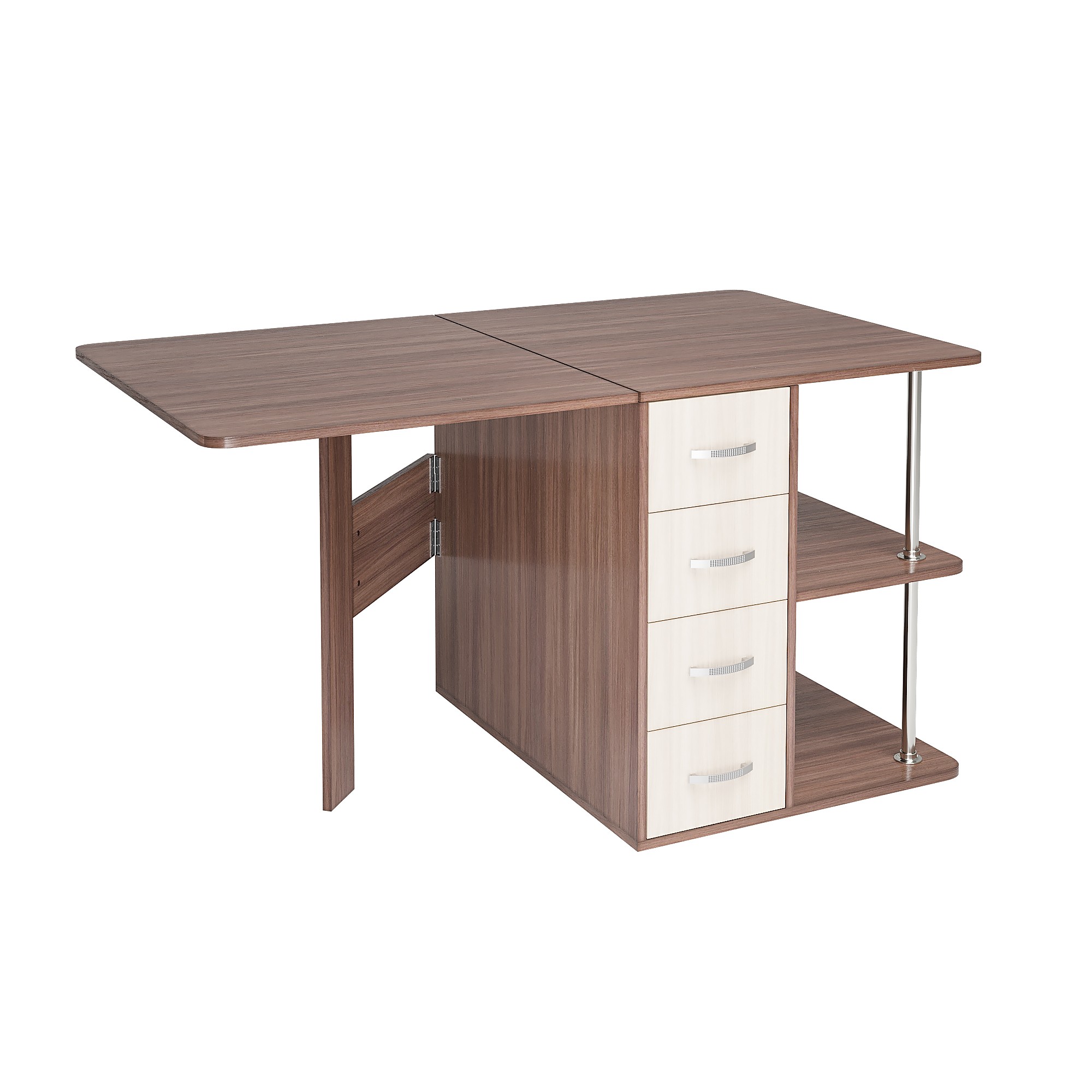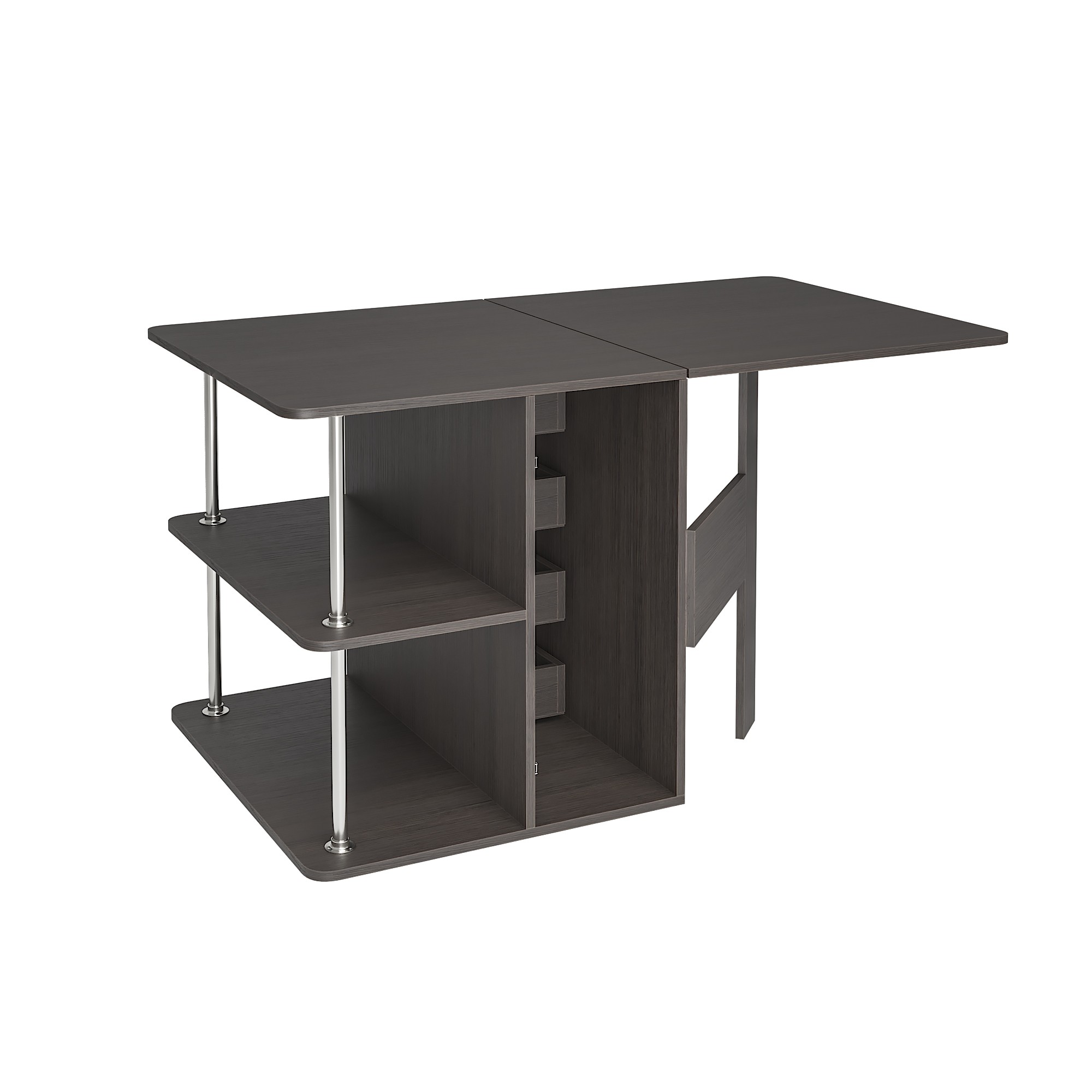 • С одной стороны стола находятся ящики для хранения, с другой – распашная створка, которую фиксирует "толкатель" (открывается при нажатии)